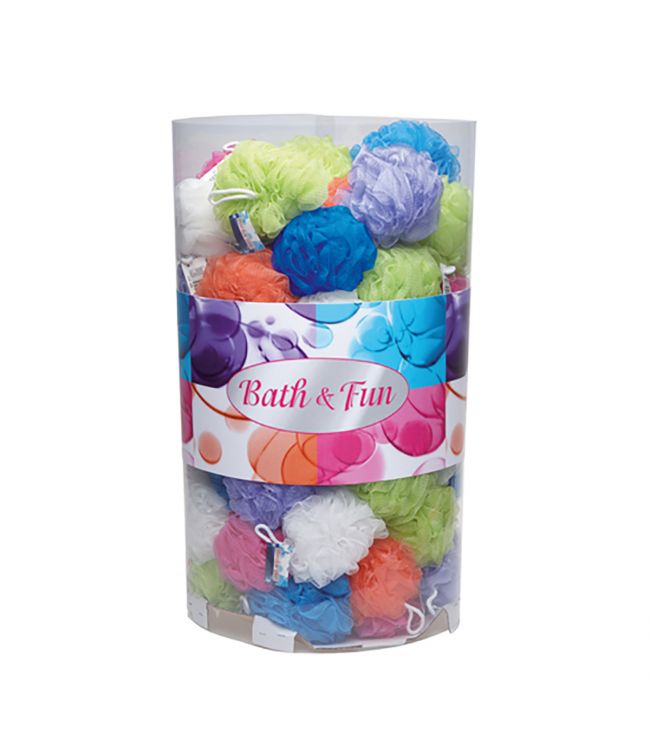 De Badflower 50GR In Ton van Bath & Fun is een voordeelverpakking van alle kleuren badflowers, geleverd in een handige ton voor in de winkel. De badflowers zijn zacht voor de huid en zorgen voor exfoliatie. Het gebruik is simpel, doe wat zeep/douche gel op de badflower en bouw een schuimlaag op. Ook helpt de badflower van Bath & Fun bij het oplossen en verwijderen van dode huidcellen. Het werk relaxend en het product kan zowel onder de douche als in bad gebruikt worden. Het touwtje zorg ervoor dat de badflower makkelijk te gebruiken is en gemakkelijk is op te hangen. Door het materiaal van de badflower gaat een kleine hoeveelheid zeep al flink schuimen. Deze spons is verkrijgbaar in meerdere kleuren, maar ook in dit voordeelpakket met hierin een mix van kleuren.