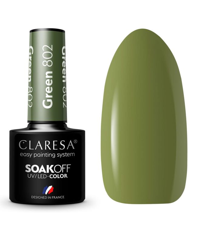 Claresa UV/LED Gellak 5ml Green 802 Take Me To The River is een puur groene kleur uit de Take Me To The River collectie van Claresa. Take Me To The River heeft een uitgebreide mix aan kleuren geïnspireerd door de natuur. De frisse en elegante kleuren vergezellen je tijdens een zomerse picknick langs de oevers van de rivier. Take Me To The River Green 802 is een frisse kleur groen, zoals het gras langs de rivier. De kleur is prachtig op zichzelf, maar ook perfect te combineren met andere tinten voor nail-art designs.