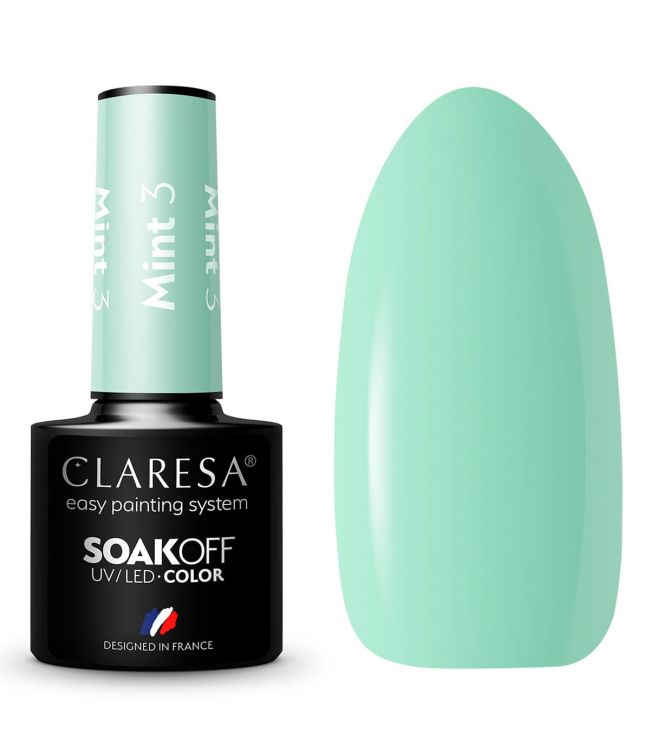Claresa UV/LED Gellak 5ml Mint 3 is een gel nagellak in een eucalyptus groene kleur uit de Mint collectie van Claresa. Laat je meeslepen door tinten van mintgroen en eucalyptus in de Mint collectie van Claresa. De frisse mintkleuren passen perfect bij het lente- en zomerseizoen en zijn goed te combineren met delicaat wit, andere tinten groen en pastelkleuren. Mint 3 is helder en fris zoals eucalyptus en laat je zelfs op de heetste dagen opgelucht adem halen.