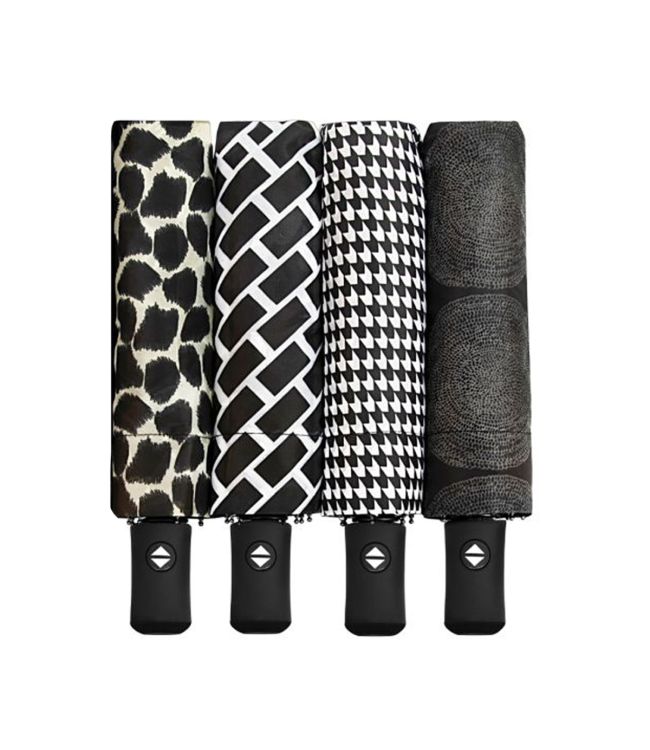 Falconetti Paraplu Automatisch Open + Close Mini Size Design Assorti is een klein formaat assorti aan paraplu's die erg handig zijn. Deze automatische paraplu opent en sluit door middel van een knop op het handvat. Zo kun je gemakkelijk je paraplu uitklappen en direct gebruiken. De paraplu wordt geleverd inclusief polybag opberghoesje. Het gewicht van de automatische paraplu is 0,315 kilogram en deze paraplu heeft een diameter van 100 centimeter. De Automatic Open/Close Paraplu heeft ingeklapt een handig, klein formaat waardoor hij gemakkelijk mee te nemen is. De Assorti Design is een trendy collectie met verschillende prints in zwarte, witte en grijze kleuren.