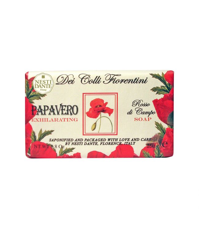 Nesti Dante Fiorentini Papavero 250gr. is een driemaal gemalen plantaardige zeep die volgens de oude traditionele Italiaanse wijze is gemaakt. Deze zeep bestaat uit 100% natuurlijke ingrediënten vanuit de directe natuur in Toscane. De zepen van Nesti Dante behouden hun geweldige kwaliteit qua hardheid en geur tot het allerlaatste stukje. Door de natuurlijke ingrediënten maakt de zeep de huid heerlijke zacht. Bovendien wordt de huid gevoed en verzorgd.