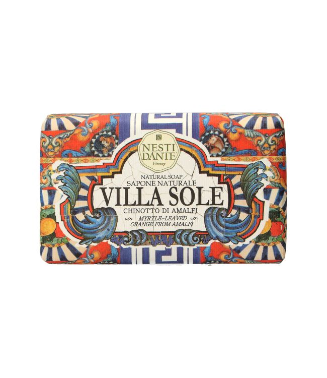 Villa Sole is een collectie van drie natuurlijke zepen ontstaan uit de bloei van bloemen, fruit en citrusvruchten op een zonnig terras met uitzicht op de zee bedekt met majolica tegels. De geuren zijn fris en intens en drukt alle facetten uit van de bloem die een fruitsoort wordt voor een diepe en betoverende sensatie.