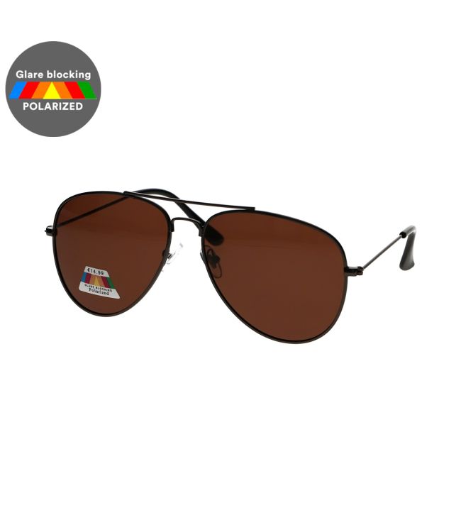 Spectrum Polarized Zonnebril Piloot Zwart Bruin Heren is een bril met een UV400/ CE-CAT 3 filter. Deze zonnebril is ISO 12312-1 en nikkelvrij. Dit is een stijlvol montuur voor heren die helpt om de ogen te beschermen tegen de zon. Deze bril heeft een piloten model met een zwart montuur. Deze zonnebril is voorzien van bruine glazen die het kijken in de zon prettiger maken. Meer Lezen