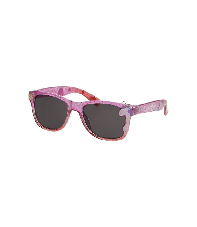Spectrum Zonnebril Unicorn Roze Glitter Kids is een bril met een UV400/ CE-CAT 3 filter. Deze zonnebril is ISO 12312-1 en nikkelvrij. Dit is een fun montuur voor kinderen die helpt om de ogen te beschermen tegen de zon. Deze bril heeft een rechthoekig model met een roze unicorn glitter montuur. Deze zonnebril is voorzien van grijze glazen die het kijken in de zon prettiger maken.